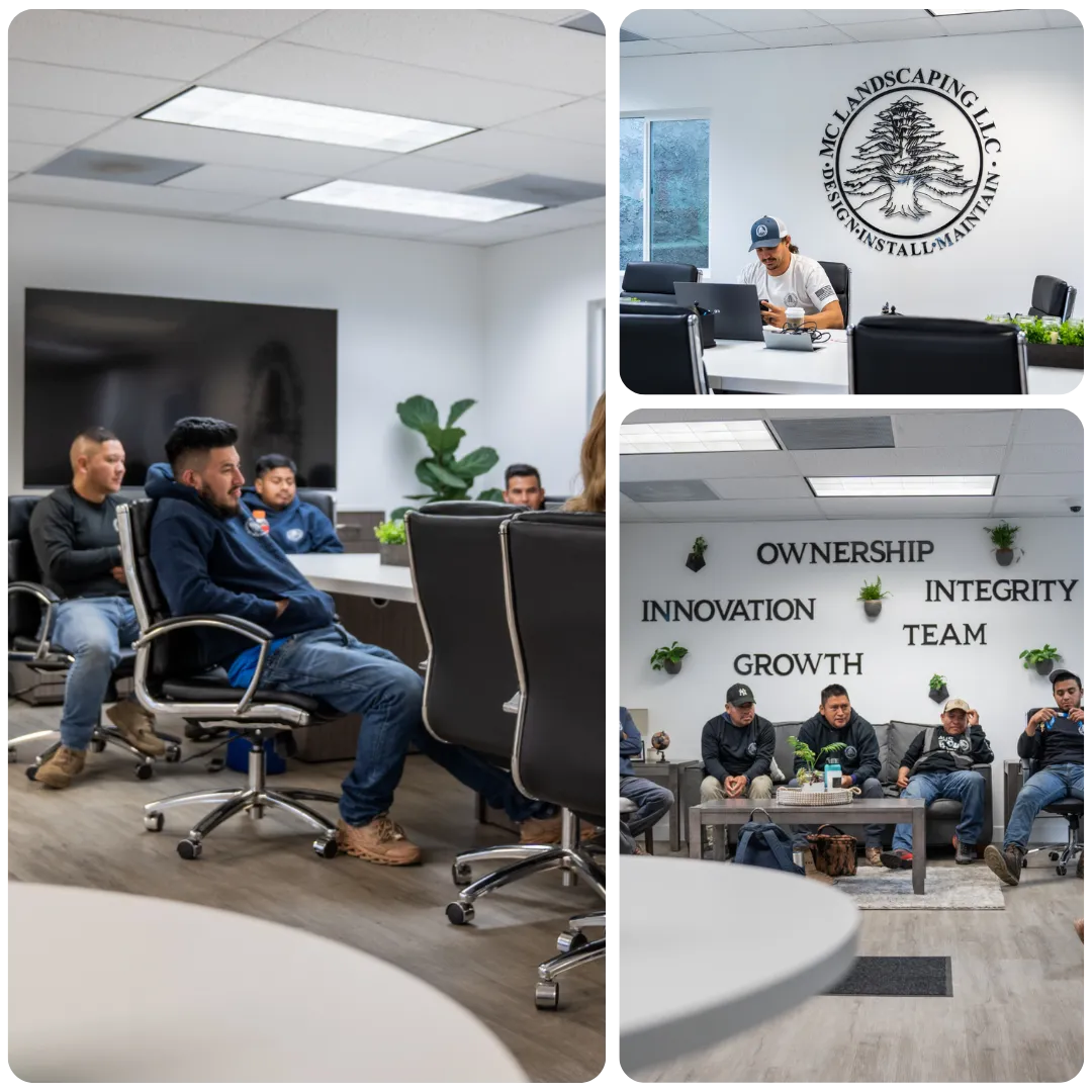 At MC Landscaping, exceptional projects start with an exceptional workspace. Our spacious, modern office sets us apart in a field where many operate out of makeshift garages. Here, our designers, installers, and maintenance specialists unite daily to plan and innovate, guided by our core values: